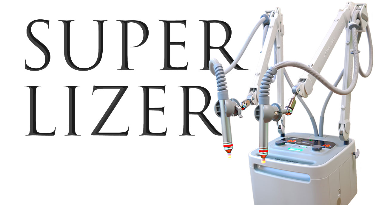 スーパーライザーは、光の中で最も生体深達性の高い波長帯の近赤外線(0.6μm~1.6μm)を高出力でスポット状に照射できる光線治療器で、その効果はペインクリニックをはじめ婦人科、眼科、皮膚科、整形外科、各科で認められ、大学病院などさまざまな医療現場で幅広く利用されています。